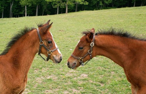 Baby's Mikey and Sparkle look at each other