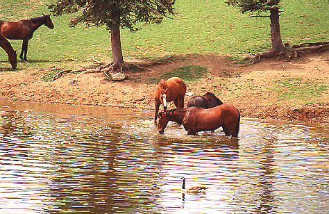Horses in the pond.